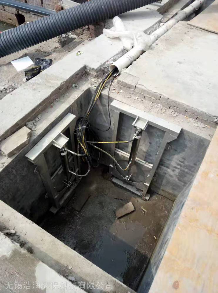 小型洞孔(B<2000)類,一般采用TY型鑄鐵直動式堰門,其功能亦可實現完全關閉。中大型洞孔(B<2000)類,一般可采用TYG型鋼制直動式堰門,且宜采用雙吊點啟閉。開口類(一般寬度大于2000,調節范圍一般小于800,三邊止水,且前后有操作空間的場合)宜選用TYX型旋轉堰門,其安裝結構分池內、池外兩種,由于啟閉機的固定需采用鉸支式結構,故前后需一定操作空間。